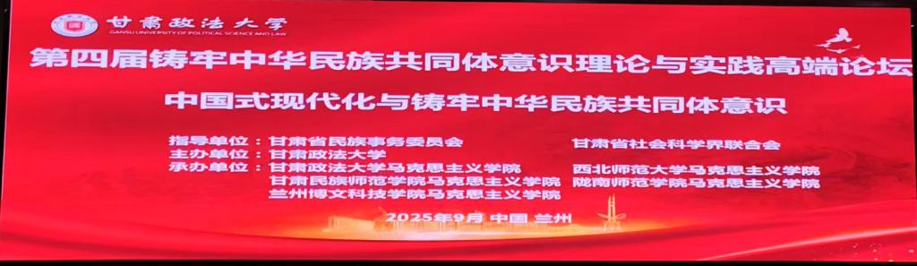 2025年9月20日,由甘肃省民族事务委员会、甘肃省社会科学界联合会指导,甘肃政法大学主办,兰州博文科技学院马克思主义学院与甘肃政法大学马克思主义学院、西北师范大学马克思主义学院、甘肃民族师范学院马克思主义学院、陇南师范学院马克思主义学院共同承办的第四届铸牢中华民族共同体意识理论与实践高端论坛在甘肃政法大学隆重举行。
