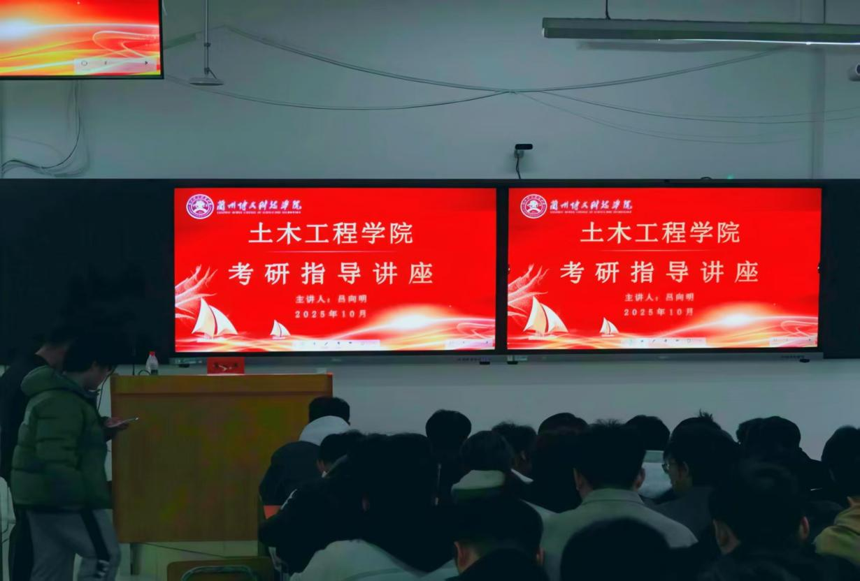 为助学子明确考研目标、掌握备考技巧,缓解备考压力,2025年10月23日下午,兰州博文科技学院土木工程学院在教学楼阶梯教室精心策划并成功举办了一场考研指导专项讲座。本次讲座有幸邀请到天水师范大学土木工程学院院长吕向明教授亲临现场,为同学们带来了一场指导性十足的考研盛宴。