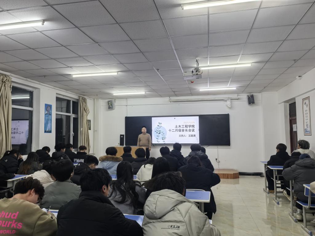 为进一步强化宿舍管理工作,筑牢宿舍安全防线,关注学生身心健康,2025年12月25日,在北校区综合教学楼召开十二月宿舍长会议,全院各宿舍长积极参会。