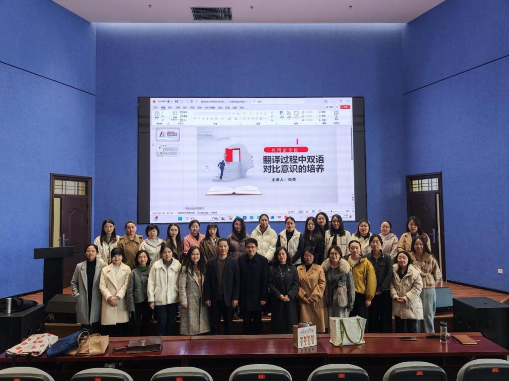 为提升我院学生翻译素养与双语对比能力,2025年11月14 日14:00-16:00,我院特邀西北民族大学外国语学院张荣教授,于新区校区图书馆报告厅举办“翻译过程中双语对比意识的培养”专家系列讲座(四)。本场讲座由外国语学院院长刘普主持,学院师生积极参加。