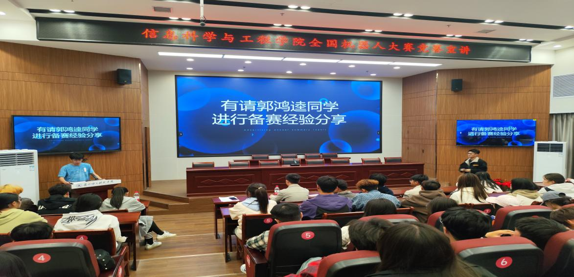 此次宣讲会不仅为学院学生搭建了了解高水平机器人竞赛的平台,更通过优秀学子的经验传递,为有志参赛的同学注入了信心、明确了方向。下一步,信息科学与工程学院将持续推进学科竞赛指导工作,依托专业实验室与导师团队,为参赛学生提供技术支持与训练保障,鼓励更多学生以赛促学、以赛促练,在科技创新实践中提升专业能力与综合素养。