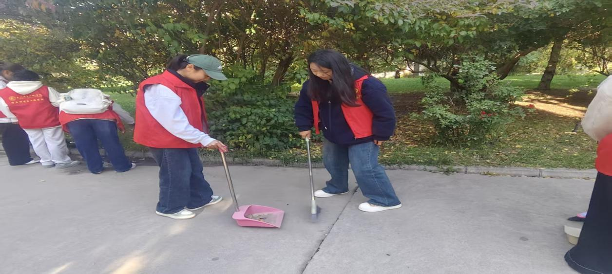 2025年9月27日下午4:30,为营造整洁,舒适,文明的社区环境,助力文明城市建设,信息科学与工程学院团委先锋部负责人赵锦程和赵旭辉带领大一全体干事开展志愿服务活动,重点对社区内的公共区域,卫生死角以及绿化带进行全面清扫,提升居民生活的满足感,幸福感。