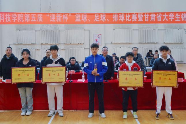 青春热血凝于奖杯,拼搏协作永绽芳华。12月18日,兰州博文科技学院第五届“迎新杯”篮球、足球、排球比赛闭幕式暨甘肃省大学生锦标赛表彰大会在北校区体育馆举行,校长陈正武,副校长刘德光,教务处、学生处、体育教学部负责人,各学院副院长出席。
