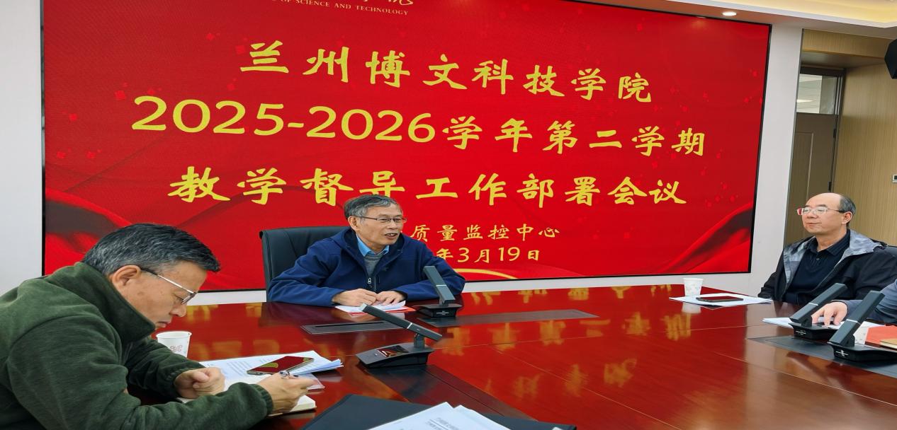 为进一步强化教育教学质量监控,夯实立德树人根本任务,3月19日,学校教学质量监控中心在新区校区1212会议室召开2025-2026学年第二学期教学督导工作部署会议。兰州博文科技学院副校长、新区校区校长刘彦凯,校级督导专家,各二级学院(部)院长,教务处相关负责人及教学质量监控中心工作人员参会。