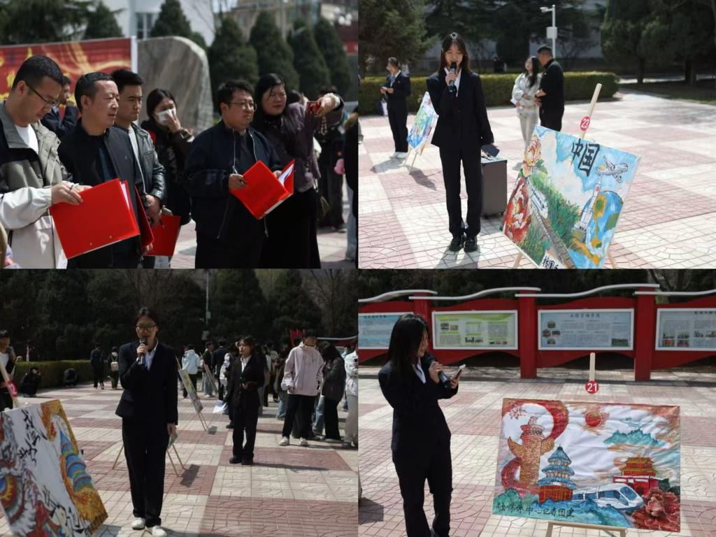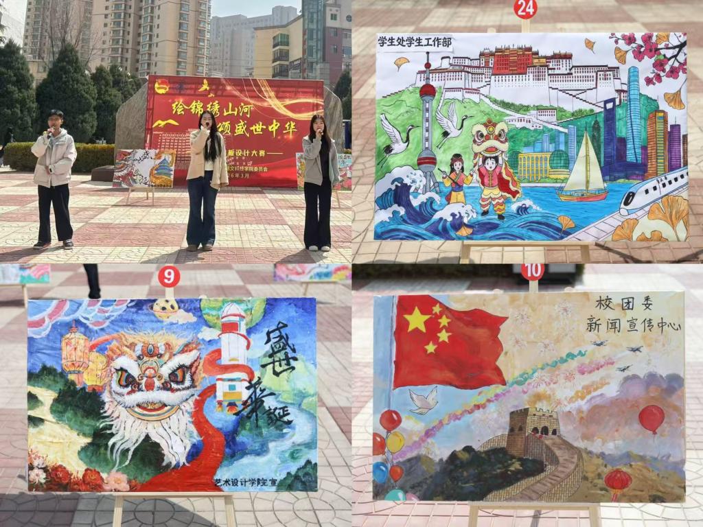 为积极响应新时代党的教育方针,切实推进“五育并举”育人工作,激发青年学生的爱国情怀,营造健康向上、富有艺术气息的校园文化环境,近日,由校团委主办的“绘锦绣山河,颂盛世中华”第二届校园展板设计大赛在南校区教学楼前开展。学校党委办公室、学生处等相关部门负责人,各学院副院长以及师生代表参加。