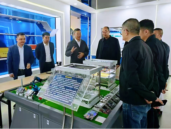 在全国人工智能职业教育产教融合共同体飞瑞敖人工智能开放型区域产教融合实践中心,考察团实地参观人工智能教育装备、智能交通沙盘等核心区域,详细了解了实践中心在人工智能技术研发、实训平台建设、产教融合模式创新等方面的成果。飞瑞敖团队围绕“普及AI教育,建设AI强国”的使命,介绍其“玩、学、做、创、赛”的人工智能教育理念,以及将真实生产场景与人才培养深度结合的实践经验,重点阐述实践中心在推动高校与企业资源共享、协同育人方面的具体举措。考察团对实践中心将前沿技术、实训平台与人才培养有机融合的模式高度认可,双方就人工智能学科建设、师资培训、学生实训合作等内容深入探讨,为学校推进人工智能相关专业建设、完善实践育人体系提供了宝贵借鉴。