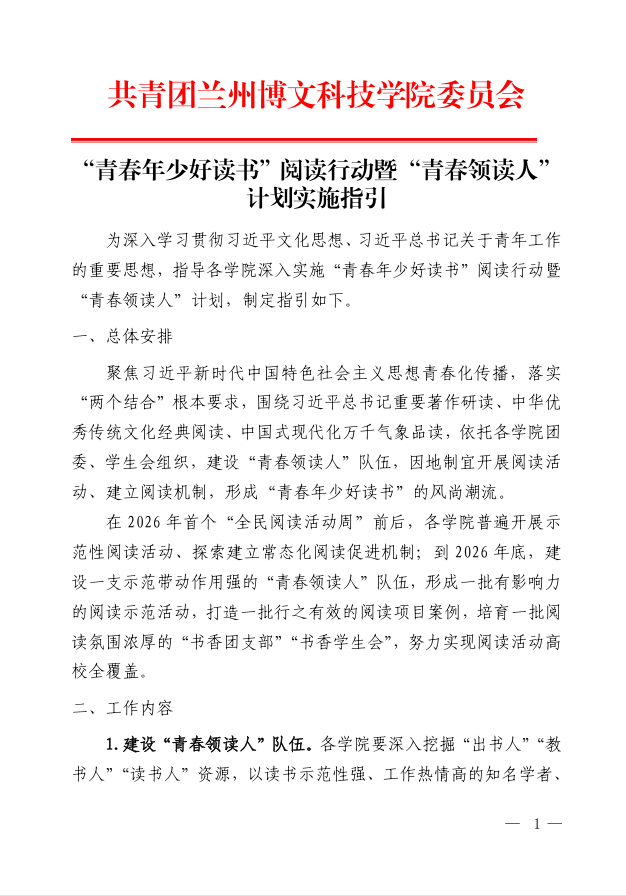 “青春年少好读书”阅读行动暨“青春领读人” 计划实施指引