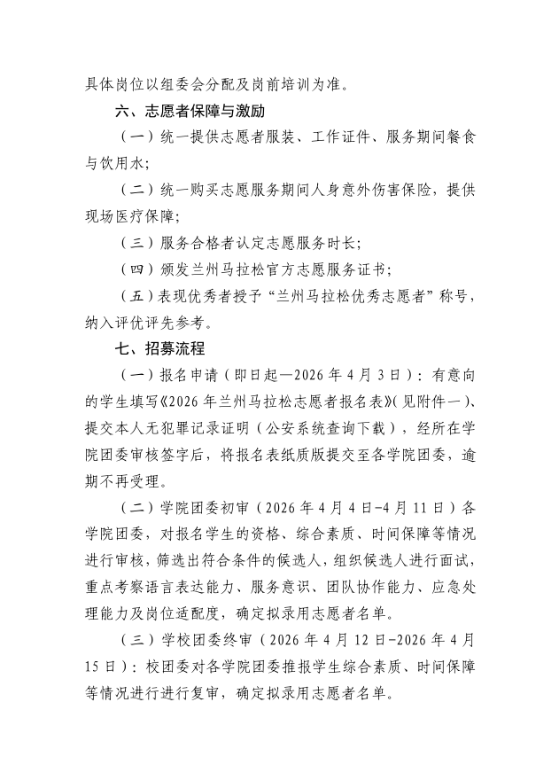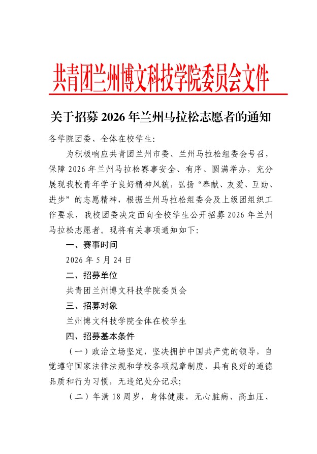 关于招募2026年兰州马拉松志愿者的通知
