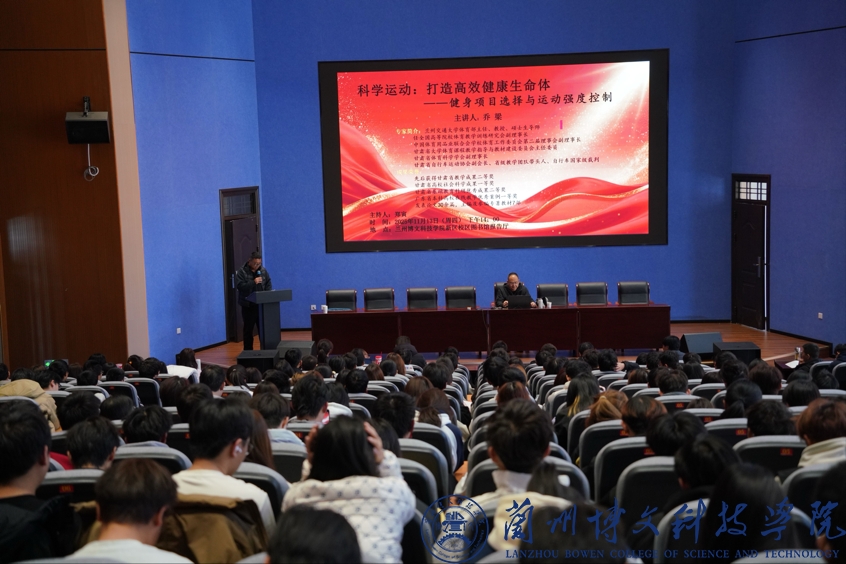 2025年11月13日,在兰州博文科技学院新区校区图书馆报告厅举办了一场以“科学运动:打造高效健康生命体”的主题讲座,兰州交通大学乔梁教授分享了健身项目选择与运动强度控制的核心知识,为健身锻炼提供了科学指导。
